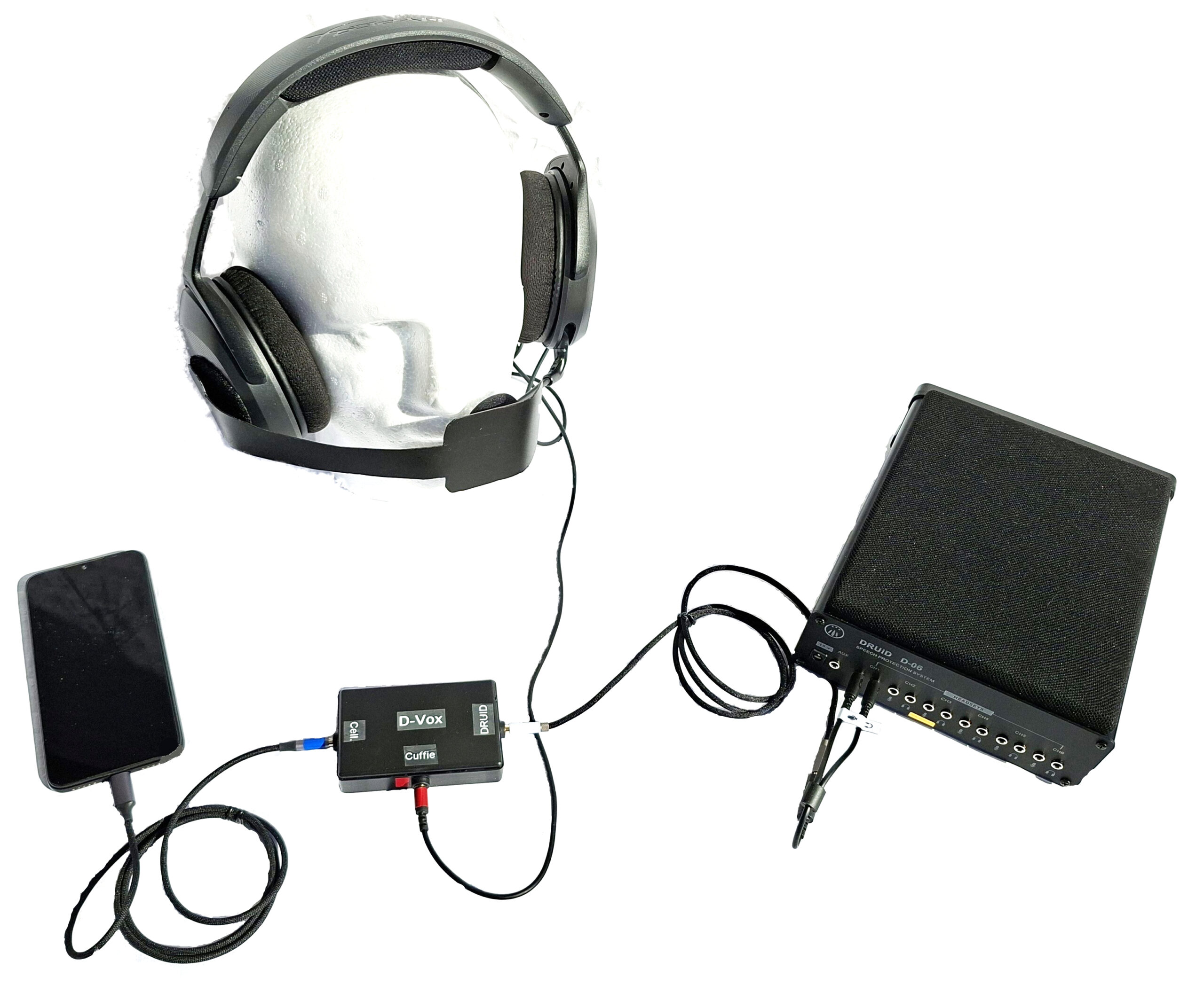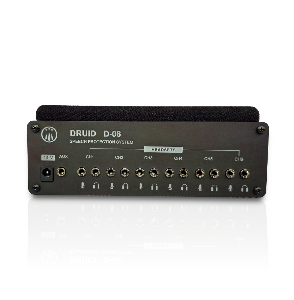 Per permettere ai partecipanti di comunicare chiaramente nonostante il forte rumore emesso, il DRUID D-06 utilizza speciali cuffie con microfono.