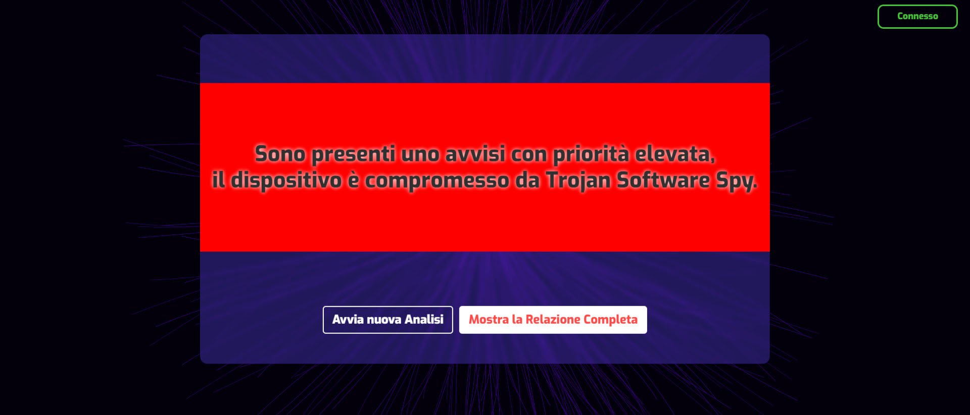 - In automatico verrà generato un Report (pdf in italiano) il quale produce documentazione certificata ammissibile ed utilizzabile in corso di procedimento legale + un file capture.pcap per utilizzo forense.
